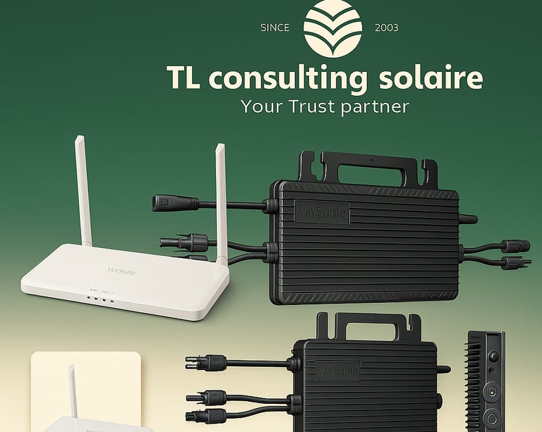Spécialistes du solaire depuis plus de 20 ans, nous sommes distributeurs officiels de la marque VAYSUNIC, reconnue pour ses micro-onduleurs intelligents et ses kits solaires portables. Nous accompagnons les installateurs photovoltaïques et professionnels de l’énergie avec des solutions fiables, un support technique dédié et un engagement constant pour l’innovation solaire.